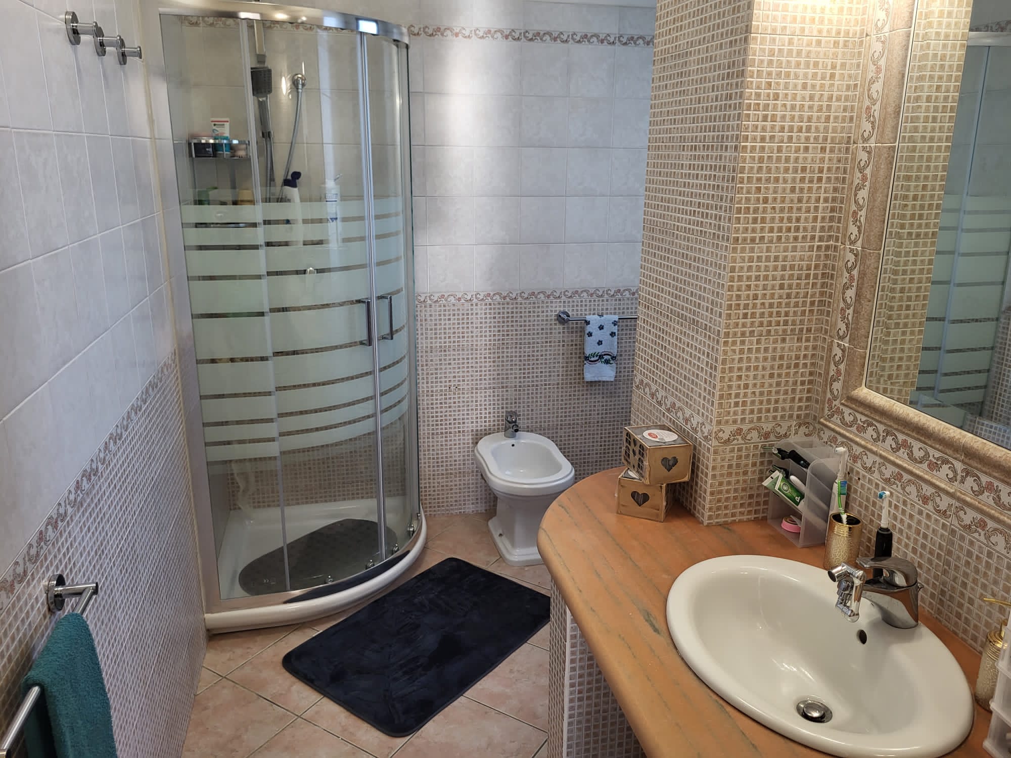 Pěkný veliký apartmán o rozloze 128 m2. Sestává ze tří samostatných ložnic, kuchyně, koupelny a velkého obývacího pokoje s klimatizací a přístupem na samostatnou terasu.